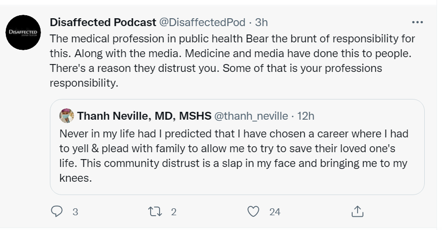 But what Josh is going goes way beyond that, blaming the medical professtionals for, what, exactly? How are they responsible? I may have to go back on Twitter to get my answers.