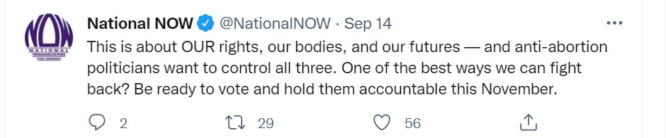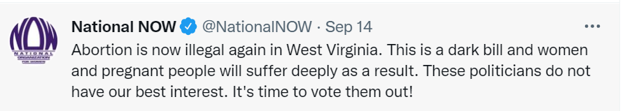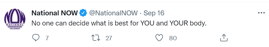 If you’re actually trying to say something, which is what NOW should be doing, the way to say it would be “women, especially pregnant women.” Saying “women and pregnant people” implies that men can get pregnant. It’s systematic deliberate obfuscation and lying. It turns feminism into a mockery.