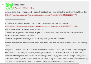 In addition: Ophelia’s earliest post on the group was from late April. (Here: https://www.facebook.com/groups/genderdiscusssion/permalink/576637755773350/)