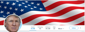 He’s changed his Twitter header from that stupid photo of him doing a thumbs up at a table full of his fans to a Great Big Awesome Rippling American Flag.