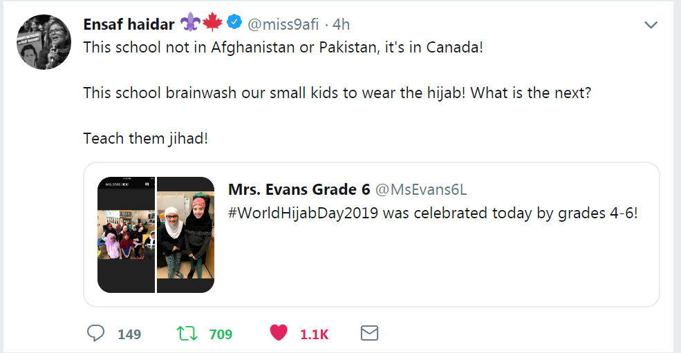 I know; many non-Muslims who observe the day don’t think they’re celebrating patriarchal religion and the subordination of women; they think they’re expressing solidarity with Muslims who are subject to racism and xenophobia. In a sense they are doing that, but they’re also expressing solidarity with theocrats who force women to wear hijab, and they’re expressing unsolidarity with women and girls who refuse to wear hijab and those who want to refuse but can’t.
