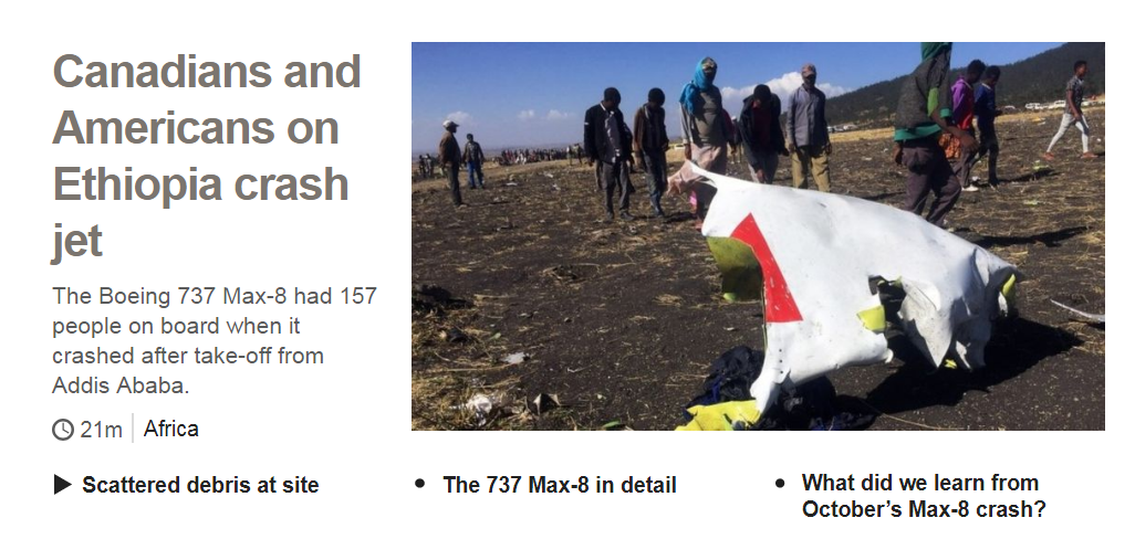 Seriously, though, this might have been a misguided attempt to interest Americans and Canadians in the story, because an article about an African passenger plane crashing in Africa would mostly be greeted with a collective ‘Meh’.