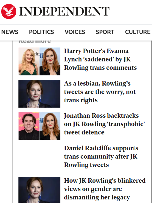 The well has already been poisoned, these ingrates have attacked JKR without even knowing what her position is, which she (in her own defense, unfortunately) felt compelled to outline in an essay on her website. I scoured the web looking for anything she said that could remotely be considered hateful or phobic, and couldn’t find a thing. Some of these people owe their careers to her, and should have at least tried to understand what she did or didn’t say before allying with the ever-so-fashionable, nasty, TRA know-nothings. It’s disgusting how lazy some of these attackers are, they don’t even find the time to understand someone’s nuanced opinion before dragging them all over the putrid social media landscape. It’s a shame, the principle of charitable reading has been all but lost. I am constantly amazed at how many stupid assholes there are in the world.