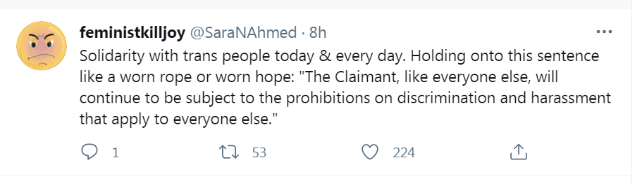 That said, it’s almost a tautology to say the claimant will be subjected to the laws everyone is subjected to; that doesn’t really give much to trans if they are saying GC views are protected. It sounds like the judge is rejecting the idea that merely disagreeing with someone’s delusion is hate speech.