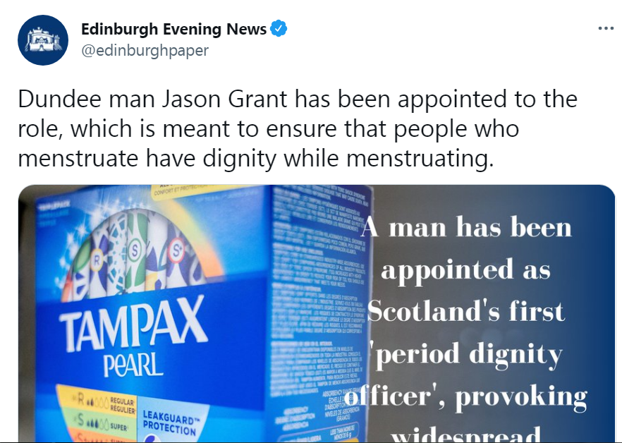 On the one hand Dundee man, on the other hand people who menstruate. It’s only the word “women” that is unsayable. Why is that? Is it because women are such unspeakable garbage that our rights and dignity and worth are all blotted out by the horror of us?