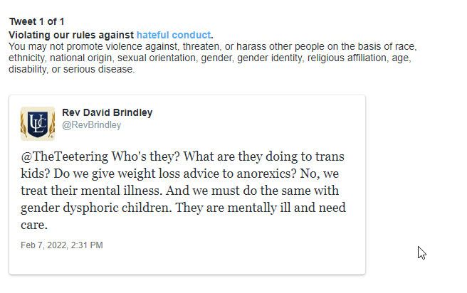 This is a “hateful tweet”, apparently.