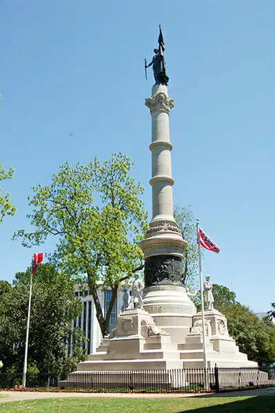 The monument was erected in 1898 by Historical and Monumental Association of Alabama & Ladies Memorial Association of Alabama, which I think explains some of the focus of the inscription on the perspective of war widows. The text is quite blatantly praising the men who fought for the Confederacy as “patriots”, “knightliest of the knightly race”, and “chivalrous”. I don’t think there is any effort to try to move it. There is also a statue honoring J. Marion Sims (“father of gynecology” who operated on slaves without consent or anesthesia) at the capitol, and recently a monument honoring his victims (titled “Mothers of Gynecology”) was unveiled; perhaps a counter-monument like that might be appropriate.