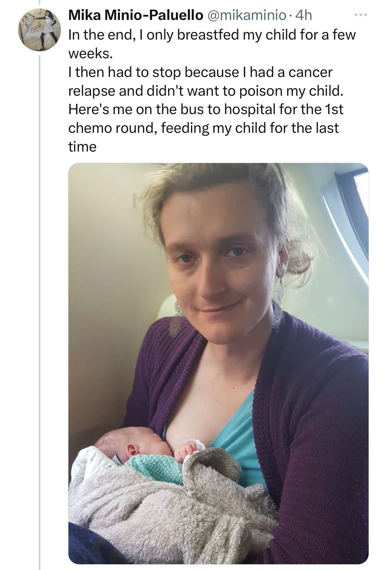Stunningly obvious that ‘lived experience’ matters. Many women here are talking about babies/breastfeeding and how difficult it can be. Then a load of ideologues telling us that men can breastfeed who clearly have never done it or ever looked after a baby? Latch on. To reality.