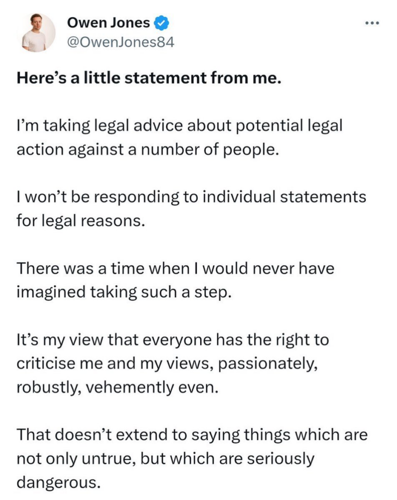 He’s taking advice. I wonder if it will be anything like “Dude you don’t have a case. The claims have to be false or else you don’t have a case.”