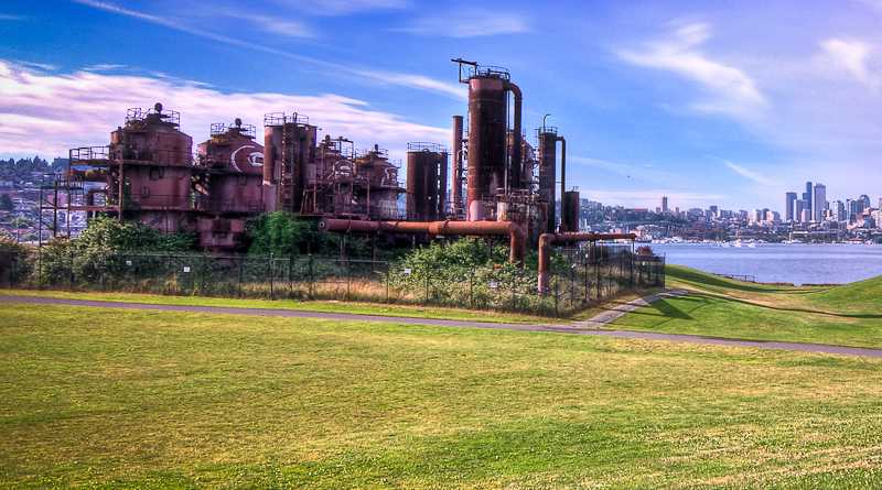 Seattle, famously, turned an old defunct gas works into a park, with the gas works still there.