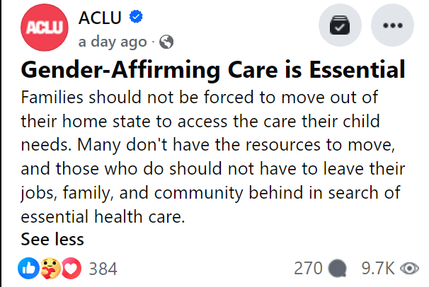 The ACLU insists that “Gender-Affirming Care is Essential” – which is ridiculous.