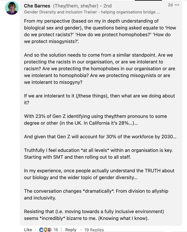 And yet genderists keep telling us that they should be able to be “their authentic selves” to their place of work for everyone else to admire and center.