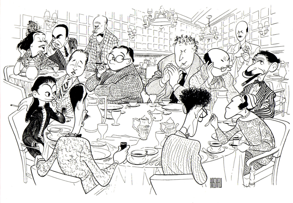 For Tim Harris in #22, I see credit like this: (1) Arty Morty compared our group to the Algonquin Round Table (in writing), then (2) Ophelia added the Hirschfeld drawing here (in high resolution), then (3) I pointed out the hidden NINA game in my comment #1 (with a link to the Hirschfeld foundation).