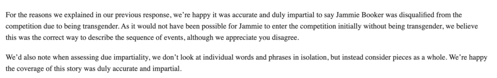 We’ve only said this a billion times. The issue is not transgender, the issue is that he’s a man in a women’s competition. That’s the part that matters. That’s the part that’s an attack on the rights of women, as you must know perfectly well or you wouldn’t be so determinedly hiding it.